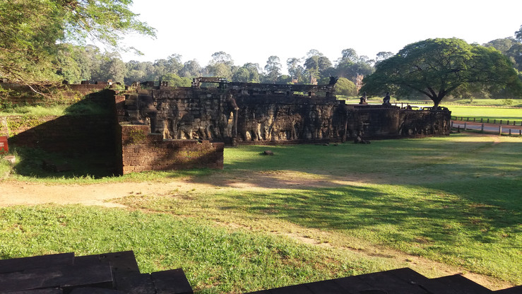 Do lado do terraço encontra-se também uns muros todos construídos em blocos de pedras cada uma com figuras hindus muito bem feitas esculpidas, criando uma espécie de labirinto. Infelizmente não conseguimos descobrir do que se tratava.
